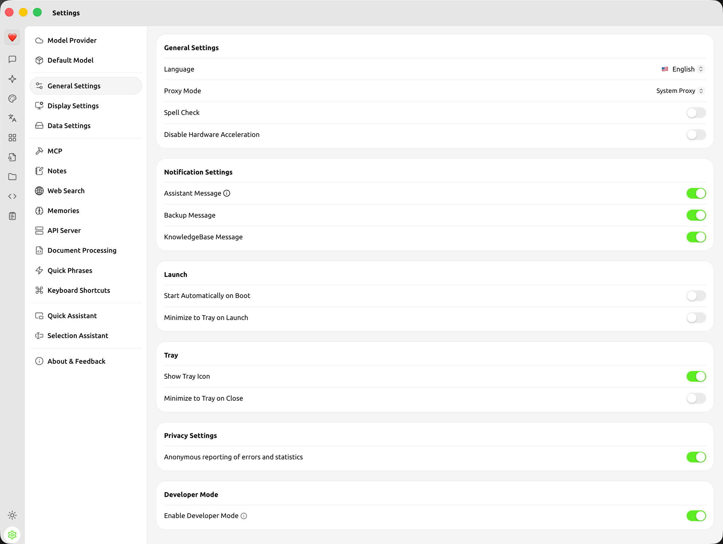 这部分设置决定了 Cherry Studio 是像“微信”一样常驻后台,还是像普通软件一样用完即走。