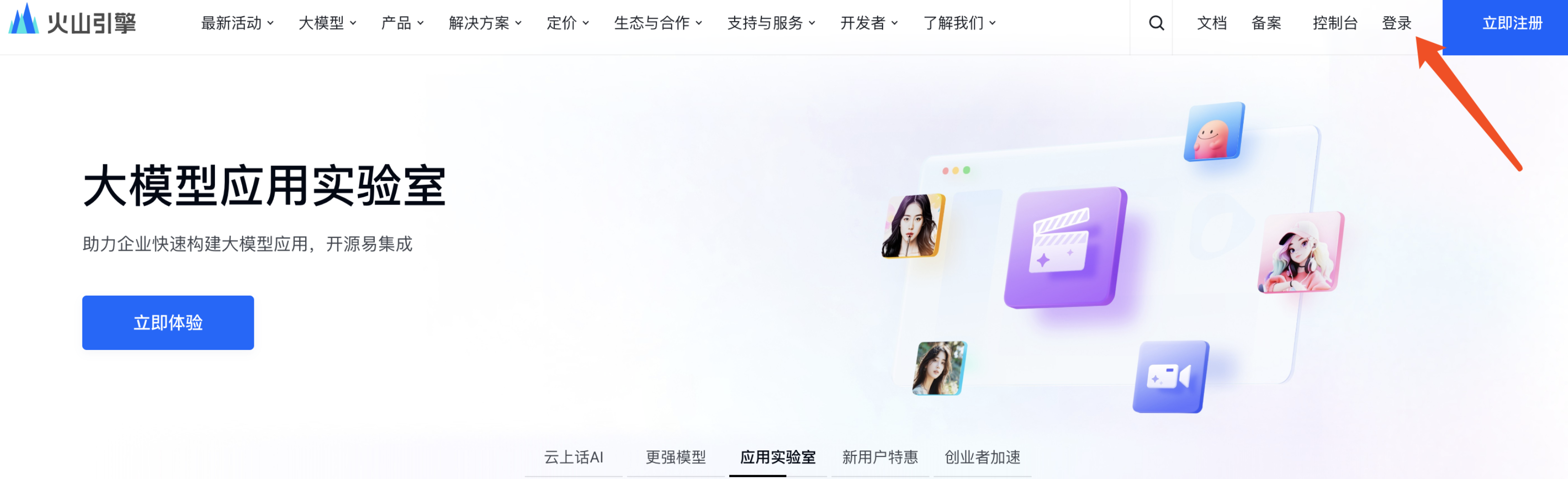 访问官网:https://www.volcengine.com/