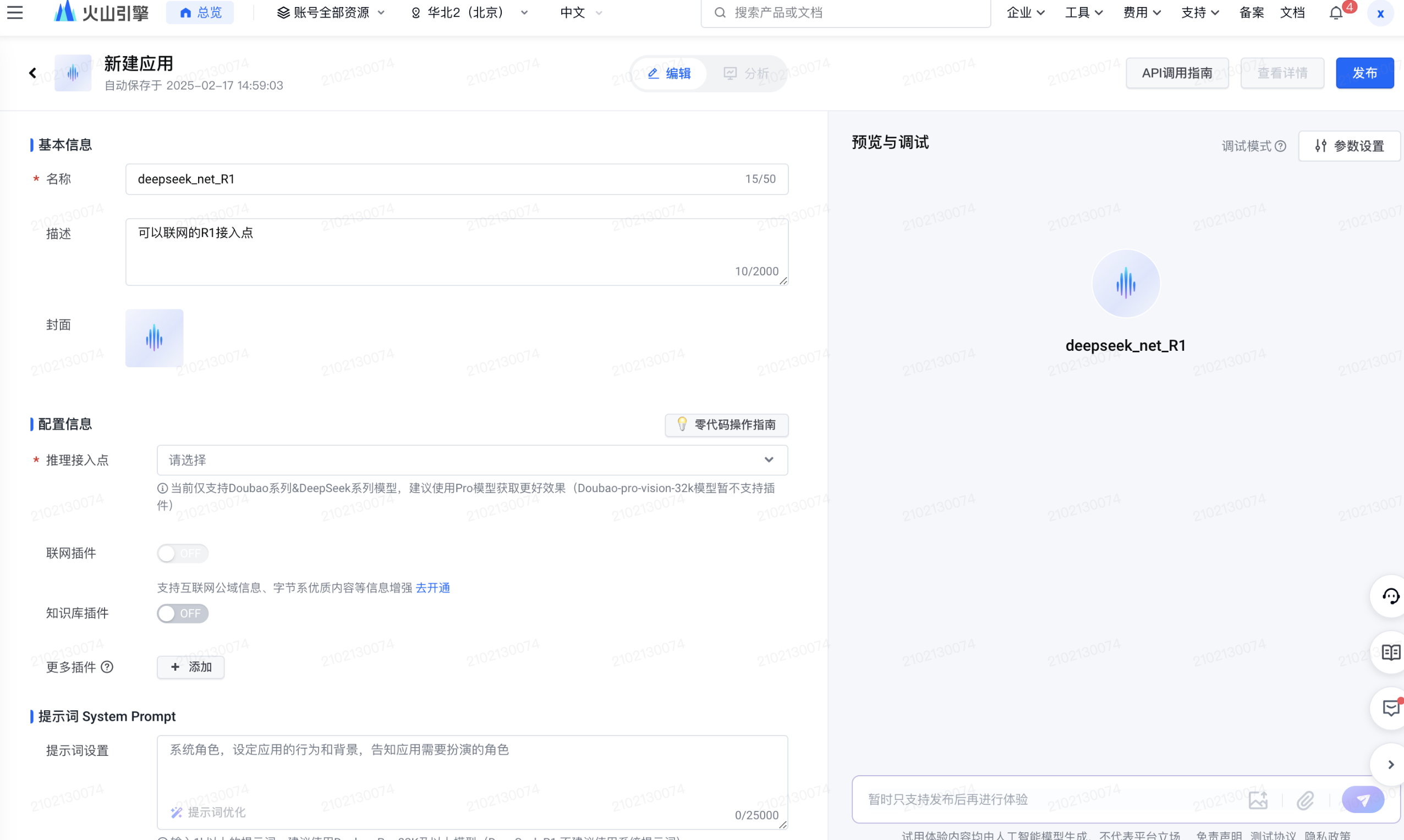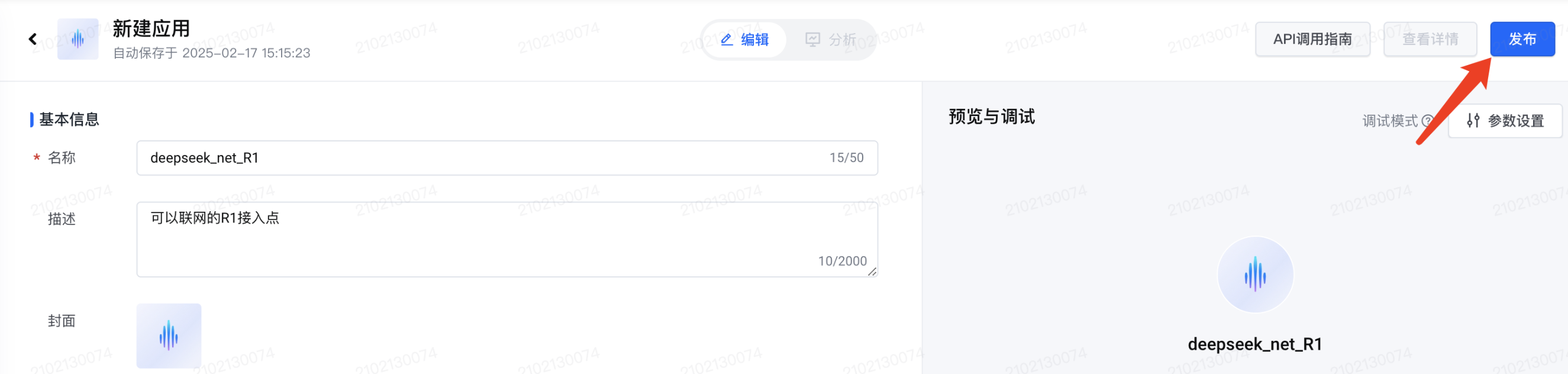 点击右上角「发布」按钮,应用创建成功。