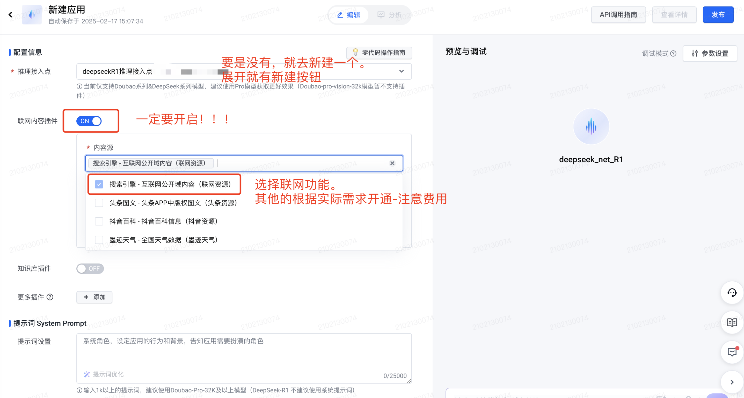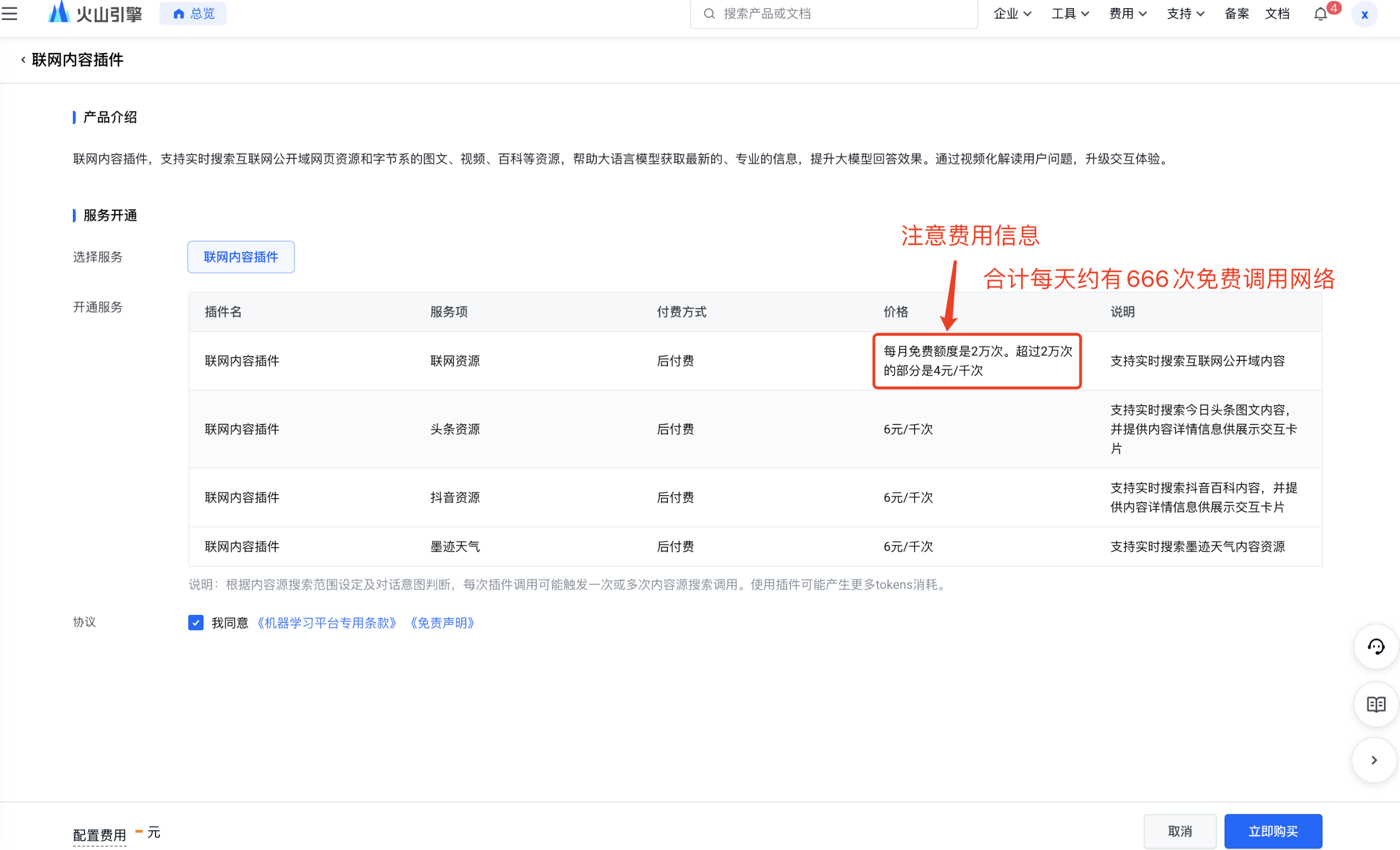 3.1、 开通联网插件功能(注意费用和免费次数)